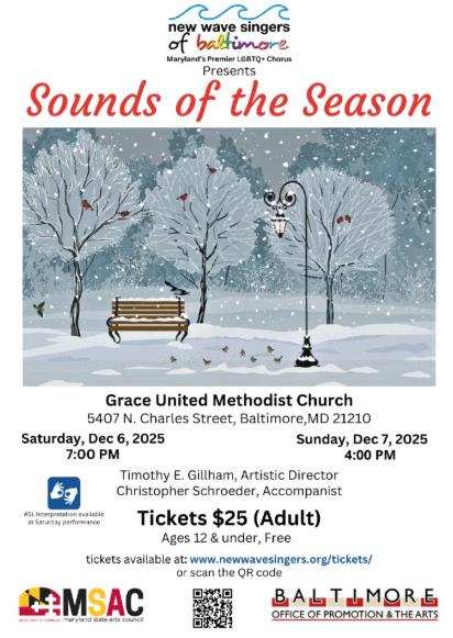 You won’t want to miss “Sounds of the Season” where the New Wave Singers of Baltimore will present ethereal, inspiring, and jubilant songs to make your season bright (if not a little teary eyed). Purchase your…