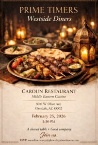 5:30 PM Saturday – Prime Timers of Phoenix Annual Holiday Party